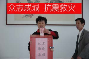 5月12日,四川汶川發(fā)生7.8級(jí)大地震。消息傳來(lái)后,工貿(mào)公司全體員工非常關(guān)注,災(zāi)情牽動(dòng)著每一個(gè)人的心。14日上午,公司領(lǐng)導(dǎo)班子研究后,決定結(jié)合全市正在開(kāi)展的“博愛(ài)在行動(dòng)、人道萬(wàn)人捐”活動(dòng)發(fā)出倡議:一是倡議全體員工每人捐助一筆善款賑災(zāi);二是鼓勵(lì)身體健康的年輕同志自愿獻(xiàn)血。倡議發(fā)出后,公司領(lǐng)導(dǎo)帶頭捐款,各部門(mén)員工紛紛慷慨解囊,短短半個(gè)小時(shí),就收到了40名員工捐款合計(jì)7600元,有8名同志報(bào)名參與集體獻(xiàn)血。大家紛紛表達(dá)了為災(zāi)區(qū)人民獻(xiàn)出一份愛(ài)心、一點(diǎn)力量的心意,同時(shí)表示將立足本崗、勤奮工作,以圓滿(mǎn)完成本職工作的實(shí)際行動(dòng),支援抗震救災(zāi)。 公司還通過(guò)短信平臺(tái)向所屬投資企業(yè)發(fā)出緊急倡議,號(hào)召各企業(yè)發(fā)揚(yáng)人道主義精神,緊急支援災(zāi)區(qū)同胞。目前,工貿(mào)系統(tǒng)企業(yè)正積極組織廣大職工參與捐款,形成一股抗震救災(zāi)、愛(ài)心捐贈(zèng)的暖流。