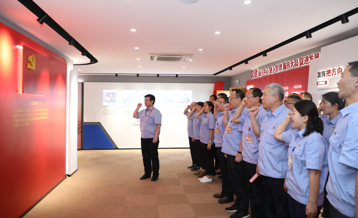 在公司黨委委員、副總經(jīng)理毛繼潤(rùn)帶領(lǐng)下,參加活動(dòng)的全體黨員面向黨旗,莊嚴(yán)宣誓,重溫入黨誓詞。公司黨委為現(xiàn)場(chǎng)7月入黨的12名同志過(guò)政治生日,贈(zèng)送政治生日賀卡和圖書。公司黨群紀(jì)檢部副部長(zhǎng)金周玉帶領(lǐng)參觀活動(dòng)中心。黨員們?cè)诹疂嵑弦?guī)承諾墻上簽名。