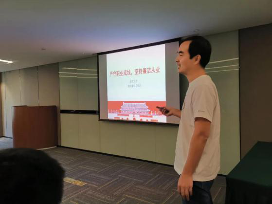 10月10日-11日,公司邀請人力資源管理專家,給制劑銷售團隊進行了人力資源管理培訓。 10月12日-13日,南沈科技黨支部書記韓曙東上了一堂以《嚴守職業(yè)底線,堅持廉潔從業(yè)》為主題的廉政課。 南沈科技綜合管理部專門介紹了商務流程,從流程、節(jié)點、成本和過程控制等方面全方位介紹中臺工作。同時,現(xiàn)場進行交流互動,對中臺工作答疑解惑,讓大家進一步了解該怎么做和為什么要這么做。 會上,制劑銷售人員各自進行了工作匯報和2021年的工作打算。 公司常務副總經(jīng)理王利兼南沈科技總經(jīng)理摁響了制劑銷售的啟動鍵,并在會上作重要發(fā)言,部署了未來制劑規(guī)劃,勉勵大家敢立潮頭、乘風破浪。