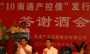 6月19日,集團(tuán)舉行“10年南通債”發(fā)行上市情況通報(bào)暨答謝會(huì),回顧了本次債券申報(bào)發(fā)行的艱辛歷程,指出此次債券發(fā)行實(shí)現(xiàn)了產(chǎn)控集團(tuán)從資本市場(chǎng)直接融資,緩解了宏觀信貸環(huán)境趨緊對(duì)資金鏈的壓力,確保了重點(diǎn)產(chǎn)業(yè)發(fā)展項(xiàng)目的順利實(shí)施,有利于提升集團(tuán)發(fā)展后勁和管理水平;并表示將繼續(xù)按照加快“資產(chǎn)資本化、資本證券化”的總體目標(biāo)要求,全力打造產(chǎn)業(yè)調(diào)整、資本營(yíng)運(yùn)和投資融資三大平臺(tái),努力把產(chǎn)控集團(tuán)培育成由一批上市公司為骨干、一批特色產(chǎn)業(yè)為支撐、一批轉(zhuǎn)型升級(jí)投資項(xiàng)目為增長(zhǎng)點(diǎn)的,最具活力、最具成長(zhǎng)性的國(guó)有產(chǎn)業(yè)集團(tuán)。 集團(tuán)董事長(zhǎng)陳照東主持會(huì)議。他認(rèn)為此次成功融資是集團(tuán)重視資本經(jīng)營(yíng)、強(qiáng)化資本運(yùn)作的又一重大突破,對(duì)于促進(jìn)投融資互動(dòng)、引領(lǐng)發(fā)展方式轉(zhuǎn)型、帶動(dòng)全市產(chǎn)業(yè)升級(jí)具有特殊意義。 市領(lǐng)導(dǎo)丁大衛(wèi)、藍(lán)紹敏、徐輝、袁瑞良等應(yīng)邀出席,省發(fā)改委財(cái)經(jīng)處、國(guó)聯(lián)證券和市有關(guān)部門(mén)領(lǐng)導(dǎo)到會(huì)祝賀。