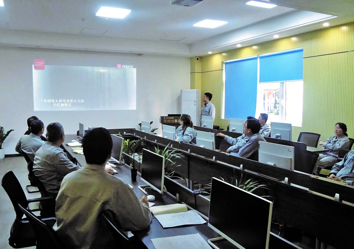 學(xué)以致用方為學(xué)。阻燃劑作為“江山”第三次創(chuàng)業(yè)的重點產(chǎn)業(yè),在此關(guān)鍵節(jié)點上,能否吹響勝利的號角至關(guān)重要。全體黨員將信念化為動力,有擔當,有斗志,擰成繩,抱成團,把工作做實做細,有力促進項目進展、積極拓展銷售市場。