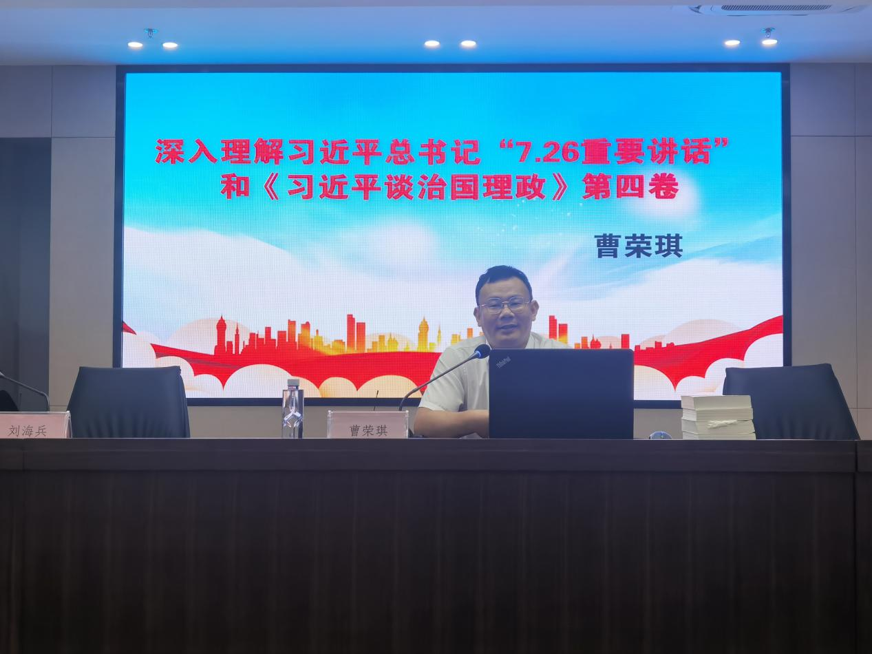 8月30日上午,國融公司召開專題學(xué)習(xí)會暨主題黨日活動,學(xué)習(xí)習(xí)近平總書記“7.26重要講話”和《習(xí)近平談治國理政》第四卷,邀請南通市通州區(qū)委宣傳部副部長、新聞出版局局長曹榮琪作專題授課。學(xué)習(xí)活動由公司黨委書記、董事長、總經(jīng)理劉海兵主持,全體員工參加了此次學(xué)習(xí)。