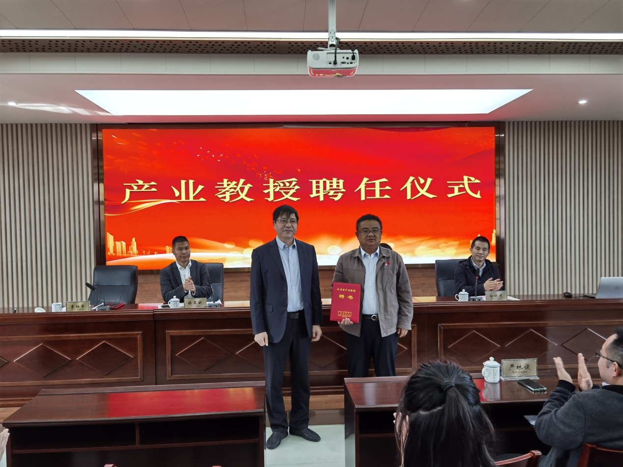 隨后,南通科技職業(yè)學(xué)院環(huán)境與生物工程學(xué)院黨總支書記白曉龍主持了江蘇省產(chǎn)業(yè)教授聘任儀式。南通科技職業(yè)學(xué)院副校長周昶向該校江蘇省產(chǎn)業(yè)教授、江蘇森萱醫(yī)藥股份有限公司總經(jīng)理袁擁軍頒發(fā)了產(chǎn)業(yè)教授聘任證書。袁擁軍表示,對于此項榮譽稱號,他深感榮幸。今后將以此為契機,進一步深化產(chǎn)教融合,努力為企業(yè)和學(xué)校更好的服務(wù)。