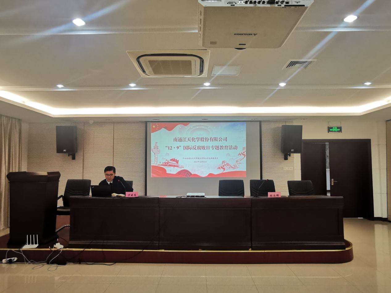 為持續(xù)筑牢公司廣大黨員干部群眾廉潔從業(yè)風(fēng)險(xiǎn)底線意識,12月11日下午,南通江天化學(xué)股份有限公司黨支部組織召開“12·9”國際反腐敗日專題教育活動。會議由黨支部書記、副總經(jīng)理張永鋒主持,公司全體黨員、管理人員及相關(guān)部門人員參會。