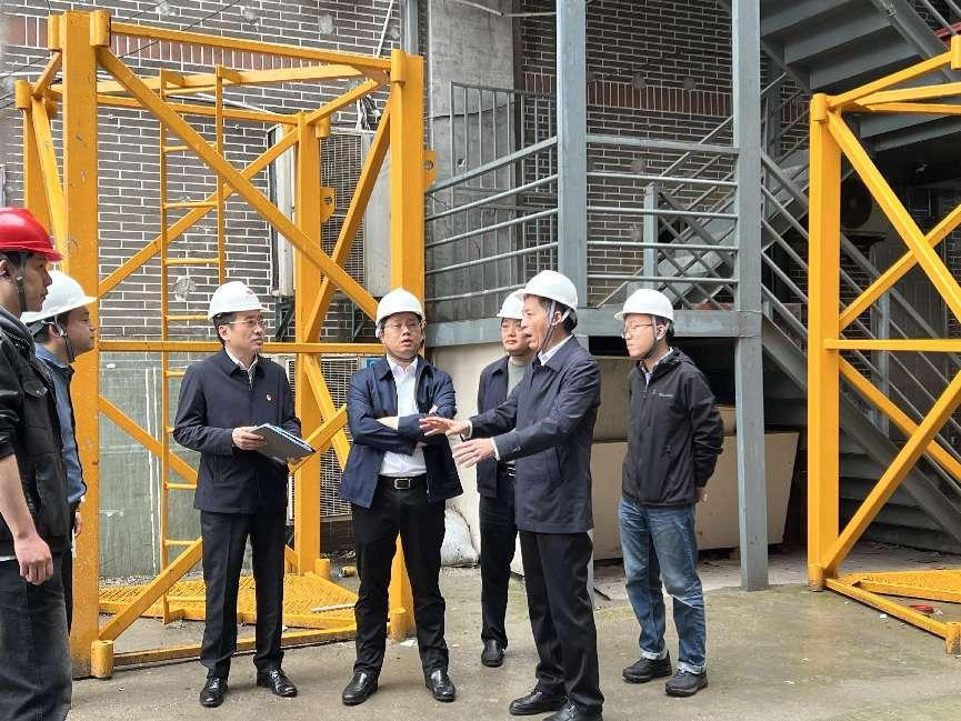 4月28日,產(chǎn)控集團黨委書記、董事長張劍橋,黨委委員、副總經(jīng)理張建,安全總監(jiān)陸建棟,資產(chǎn)經(jīng)營部副部長郭旭東一行對崇海飯店翻建項目開展節(jié)前安全檢查。國融公司黨委書記、董事長沈利,總經(jīng)理吉東及陽光代建項目負責人、南通一建項目經(jīng)理、眾辰監(jiān)理項目總監(jiān)等陪同檢查。